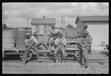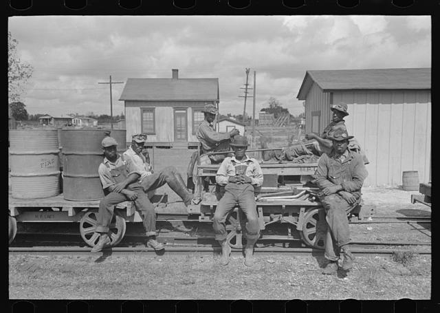 (Image of railroad workers in Port Barre, Louisiana, 1938, via Library of Congress, public domain)